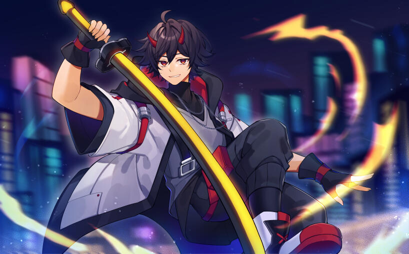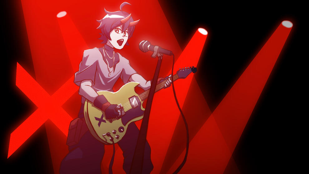 half-oni bounty hunter whose mastery of sword and gun has earned them both fear and respect. With supernatural strength and stealth, they take on perilous bounties, navigating a complex web of rival hunters, ancient curses, and syndicates in pursuit of the ultimate prize that could grant them true freedom.By day, they trade the blade for a guitar, fronting Aimpunch, a rock band whose music echoes their unspoken battles. Each performance is a raw, rebellious release, drawing fans captivated by the magnetic energy that hides untold stories of midnight skirmishes and unbroken resilience.To those who’ve glimpsed both personas, Sparro is a warrior and a rocker—a soul driven by something deeper than fame or power, forever on the edge between the worlds of light and shadow.